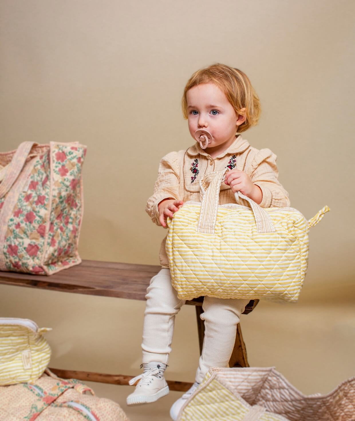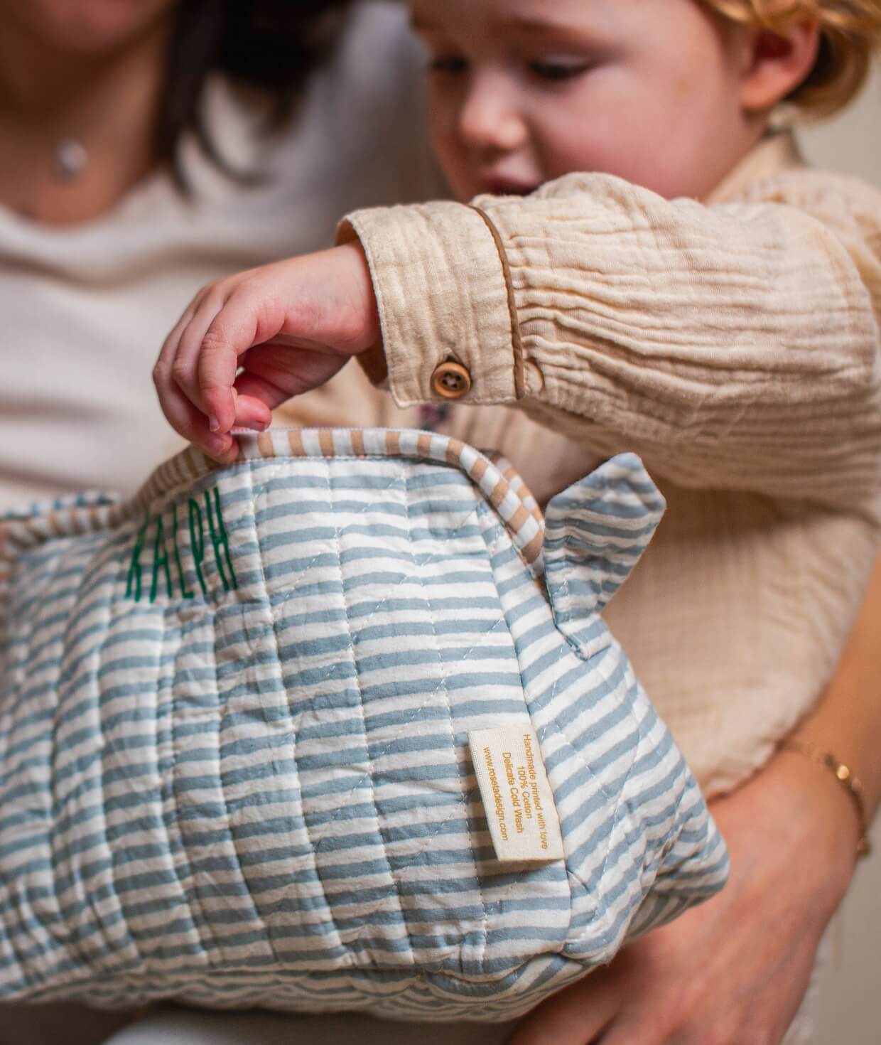 Chez Roseta, on vous propose des produits de cœur et de douceur qui vous simplifient la vie ! Nos motifs exclusifs sont imprimés sur un matelassage 100% coton, doux et moelleux, qui permet de rendre nos sacs légers, facilement pliables et entièrement lavables. Un petit plus largement apprécié pour les petites et grandes aventures du quotidien.