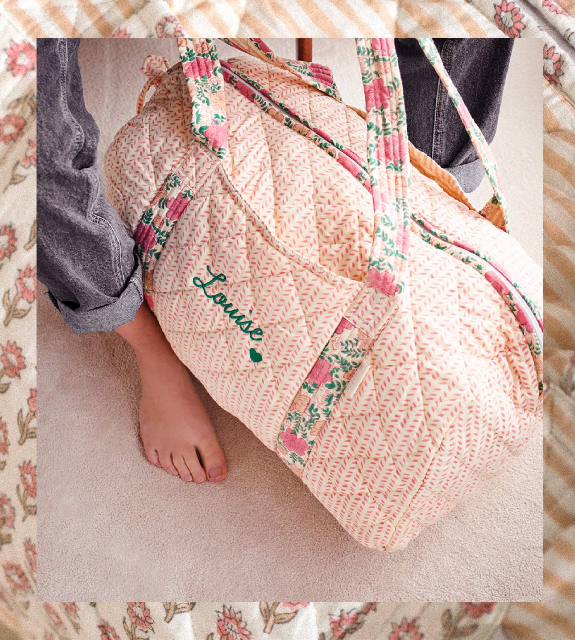 Nos sacs et accessoires sont une ôde à l’amour et à l’art du textile. Tout commence en Inde avec le blockprint, une technique ancestrale 100% artisanale. Et pour rendre votre achat encore plus précieux, personnalisez-le avec la broderie de votre choix : un prénom, un surnom, un mantra… c’est vous qui choisissez ! Faites nous voyager…