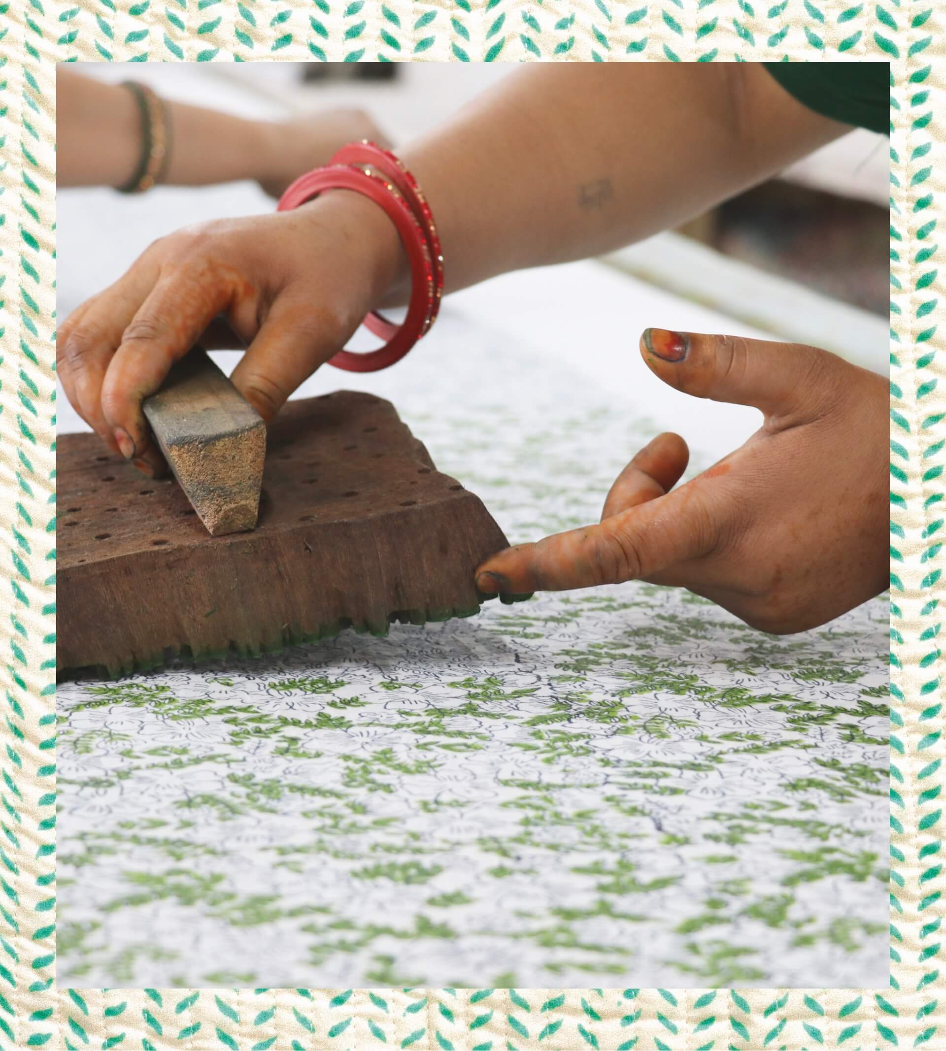 Nous avons choisi le Rajasthan, berceau millénaire de la pratique du block printing, pour réaliser l'ensemble de nos motifs originaux et faire perdurer ce savoir-faire précieux. L'atelier familial avec lequel nous collaborons s'inscrit dans cette même démarche de respect et de transmission que nous défendons.