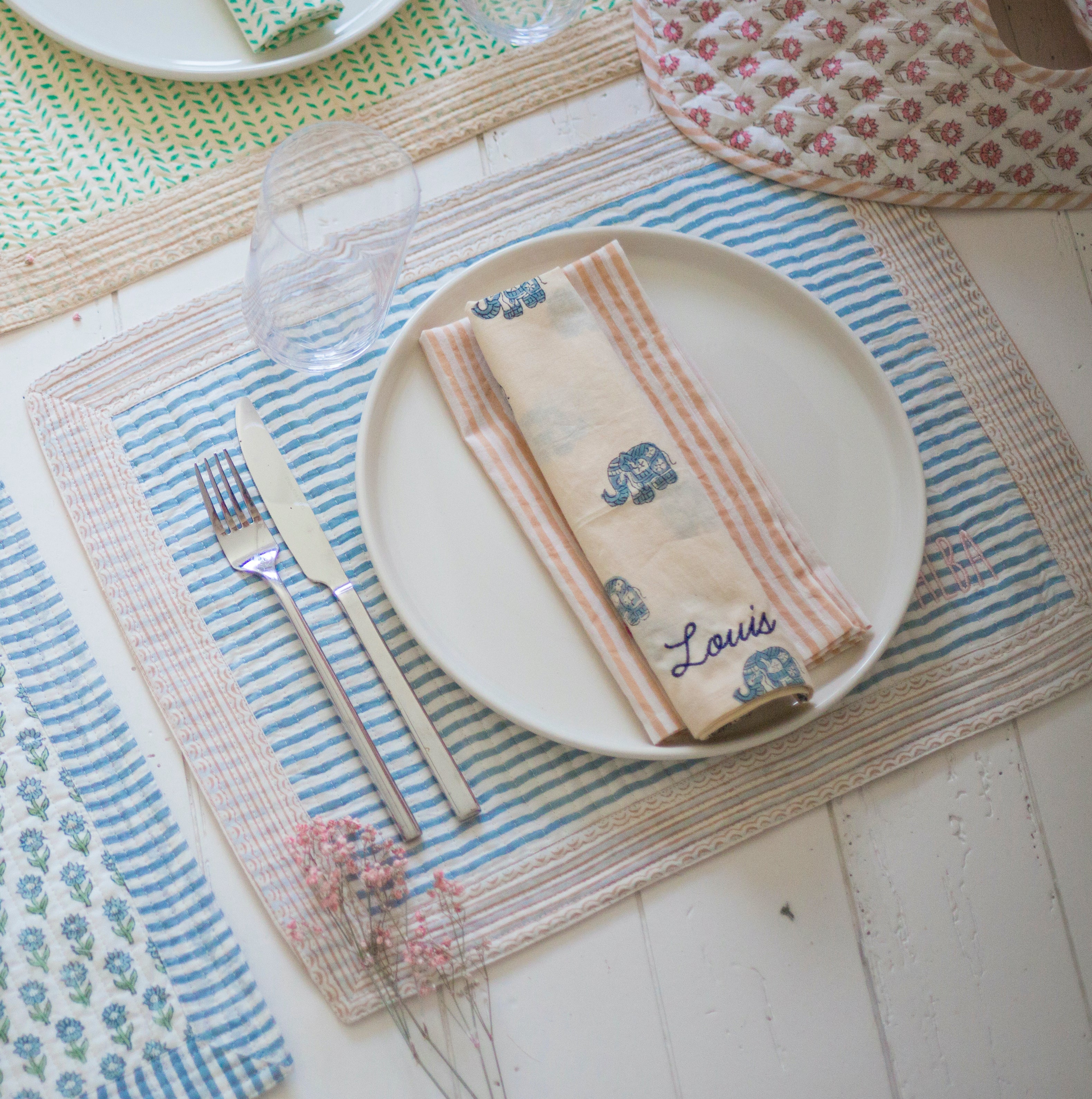 Tous nos motifs sont imprimés à la main en Inde selon des techniques ancestrales dans des ateliers à taille humaine respectueux de l'Homme, de l'Environnement et du Temps.